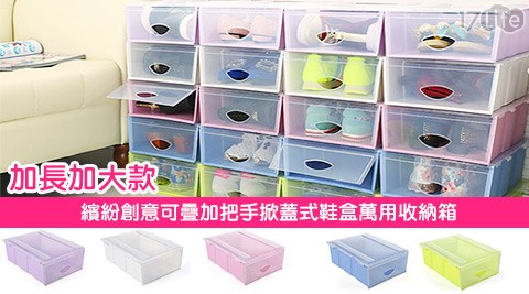 平均最低只要125元起(含運)即可享有加長加大款繽紛創意可疊加把手掀蓋式鞋盒萬用收納箱:1入/2入/4入/6入/8入/12入/16入,多色選擇?